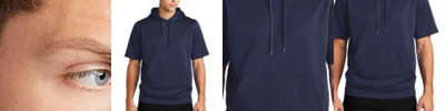 Made for layering, this moisture-wicking hoodie has trend-right short sleeves for more mobility. 5.5-ounce, 100% polyester Anti-static Tag-free label Three-panel hood Dyed-to-match drawcords Taped neck Self-fabric hem Front pouch pocket